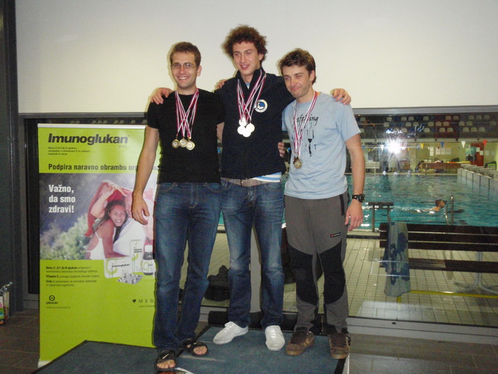 | Takmičari S.K. Naissub, članovi Aida Srbije, Ljubica TRUTIĆ, Milena RADIĆ i Ivica Stojanović su 25. i 26. novembra 2011. godine učestvovali na “Slovenian National Championship 2011”takmičenju, koje je održano u Mariboru. Ekipu iz Srbije činili su još Aleksandar Karjuk, međunarodni sudija AIDA D i Ernest Klozi. Na takmičenju je bilo 18 takmičara iz Slovenije, Hrvatske i Srbije. Takmičari su se oprobali u sve tri bazenske discipline. Zapažen rezultat postigla je Ljubica, koja je oborila dva nacionalna rekorda u disciplinama DNF (90m) za 4 metara i DYN (137m) za takođe 4 metara. U disciplini STA, što se naših takmičara tiče, Ljubica je zadržala dah 4’43”, što joj je bilo dovoljno za prvo mesto, Milena 4’04” i ukupno je bila druga sa ovim rezultatom, dok je Ivica sa vremenom 2’05” zauzeo osmo mesto u ovoj disciplini, Kod muškaraca, prvi je bio Tomislav Sviličić iz Hrvatske (6’30”), drugi Samo Jeranko (6’16”), dok je treće mesto zauzeo Jure Daić (6’02”). Što se dinamike bez peraja tiče, Ivica je na svom prvom takmičenju izronio posle 75m i zauzeo odlično treće mesto, prvi kod muškaraca je bio Samo Jeranko (133m), a drugi Jure Dić (130m). U ženskoj konkurenciji, prvo mesto je osvojila Ljubica (90m), druga je bila Darija Sarić iz Hrvatske (79m), dok je Milena izronila posle (104m), ali na žalost, zbog BO dobila je crveni karton.U disciplini DYN, kod muškaraca prvo mesto zauzeo je Samo Jeranko (192m), drugi je bio Matej Bergoc (163m), iza njih na trećem mestu Tomislav Sviličić (156m), Ivica na sedmom mestu (70m) u ovoj disciplini, a kod žena Ljubica se po treći put popela na pobedničko postolje, sa izronjenih (137m), druga je bila Darija (130m), a treće mesto domaća takmičarka Maša Sorn (104m). Milena je izronila posle (100m) i zauzela četvrto mesto. Čestitamo svim našim takmičarima na ostvarenim rezultatima i novim nacionalnim rekordima! Organizator takmičenja, Jure Daič sa ekipom. |