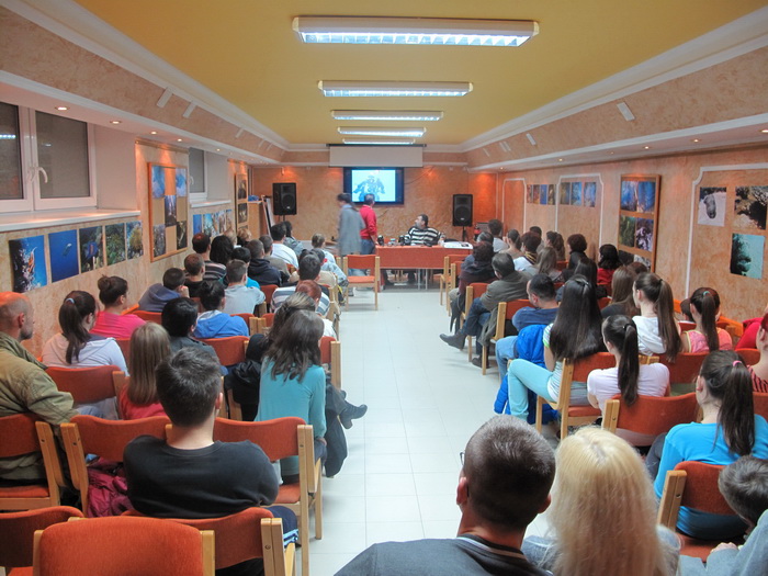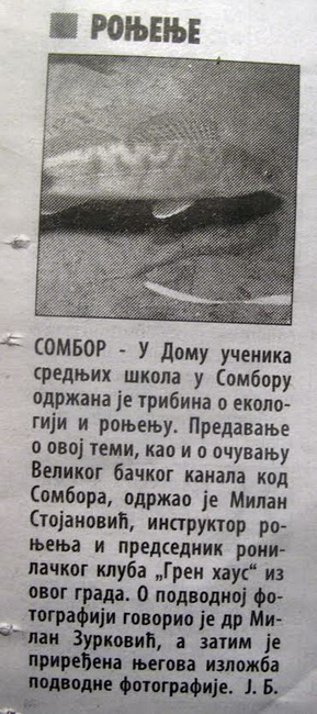 | TRIBINA O EKOLOGIJI I RONJENJU SOMBOR Decembar 2014 Instruktor Milan Stojanović sa svojim kolegom Dr Milan Zurković napravili su lepu tribinu o ronjenju i ekologiji. Akcija za svaku pohvalu.